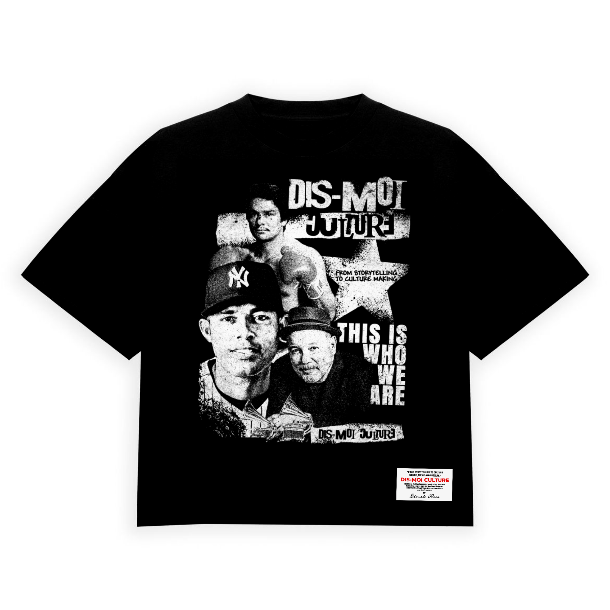 A visual tribute to Panama and its street essence. Black T-shirt with a collage-style front graphic combining iconic figures, cultural references, and the message “This Is Who We Are”. A piece that represents pride, roots, and flow.